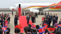 中国の親善使節団を乗せた航空機は、群衆の歓送を受けながら平壌を出発した。