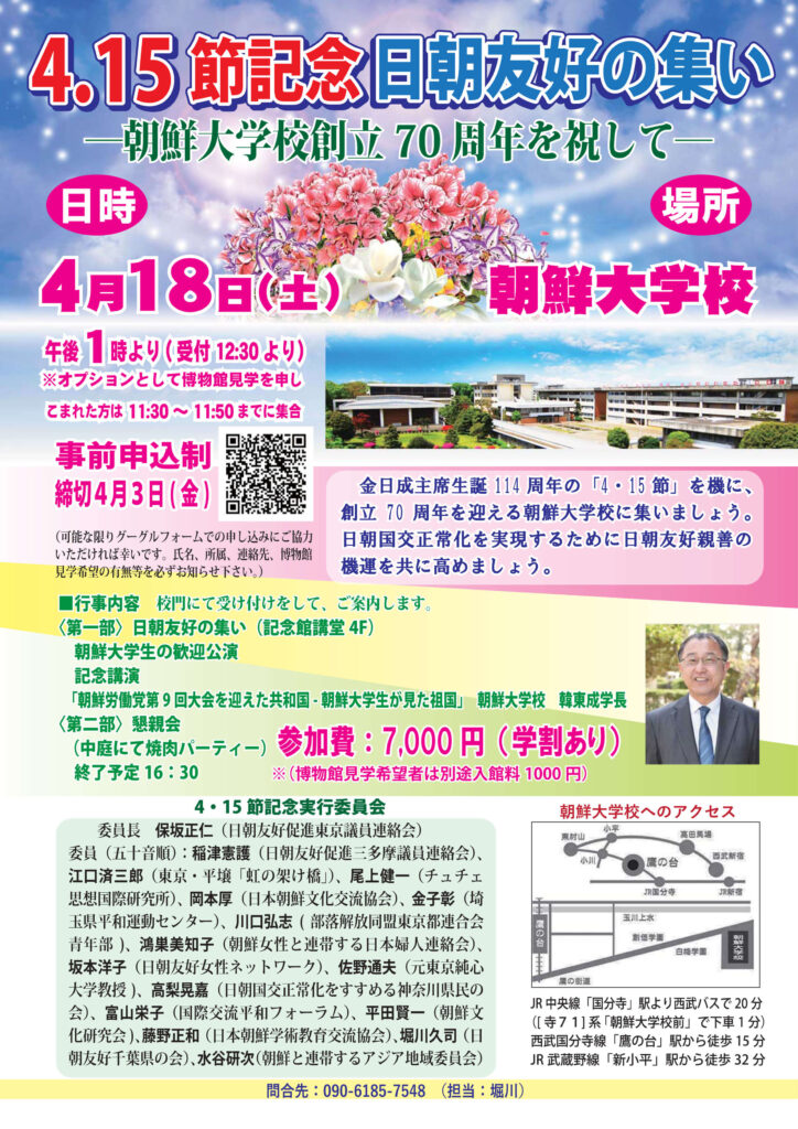 「4.15節記念 日朝友好の集い」のお知らせ