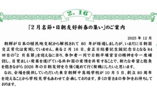 朝鮮が日本の植民地支配から解放されて 80 年が経過しましたが、いまだに日朝国交正常化は実現していません。来る2月16日、金正日総書記生誕記念日となる84回目の「2 月名節」を迎えるに当り、参加者一同で日朝平壌宣言の精神を今一度確認し、目覚...