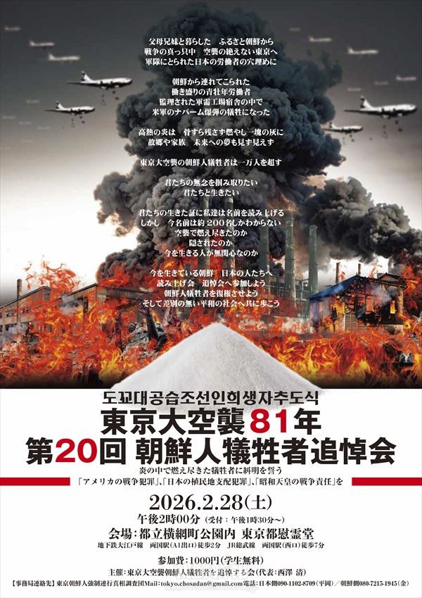 主催:東京大空襲朝鮮人犠牲者を追悼する会(代表:西澤清)