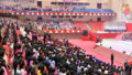 栄えある革命の行路の上に前進の新たな標柱を打ち立て、我々の闘争隊列に衝天する活力を満たした朝鮮労働党第9回大会を記念し、ここ金日成広場にて盛大な儀式が執り行われることになりました。